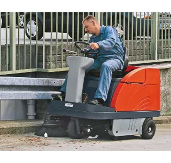 La balayeuse autoportée allie puissance et excellente rentabilité, idéale pour le nettoyage industriel. Fabriquée en Allemagne avec des matériaux de haute qualité, elle offre un rendement pouvant atteindre 10 400 m²/h. Conçue pour un balayage rapide et efficace, elle s’adapte parfaitement aux entrepôt, halls de production et espaces extérieurs pavés, tout en étant capable de franchir des pentes, ce qui la rend également adaptée au nettoyage des rampes et des parkings couverts.