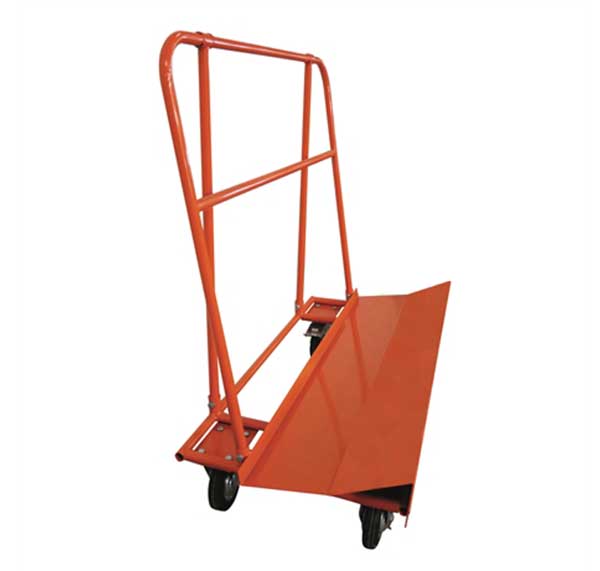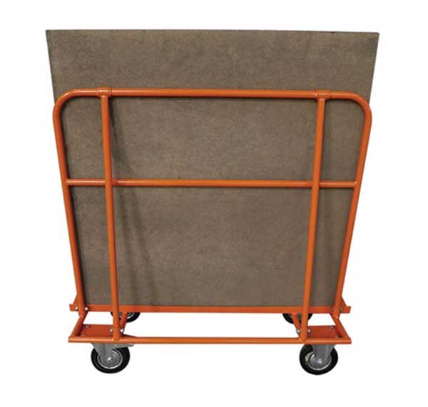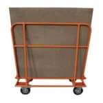 Chariot en acier porte-panneaux avec plateau incliné, idéal pour transporter en toute sécurité des charges volumineuses telles que des panneaux de bois, tout en garantissant une stabilité maximale.