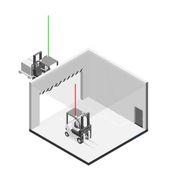 Système de détection de plafond capable de modifier l’état d’un matériel (vitesse, signale sonore ou visuel) en fonction de la hauteur de plafond détectée et configurée. Grâce à sa technologie FMCW, le capteur radar est capable de détecter un plafond et de transmettre une information pour, par exemple, modifier la vitesse des matériels dans une zone à risques.