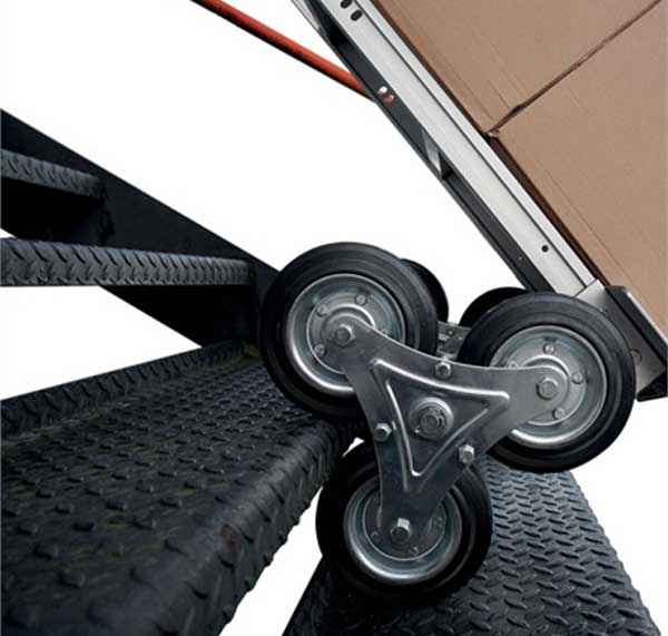 Le diable aluminium trois roues monte-escalier, d’une capacité de 150 kg, facilite le transport de colis dans les escaliers en toute sécurité et sans effort.
