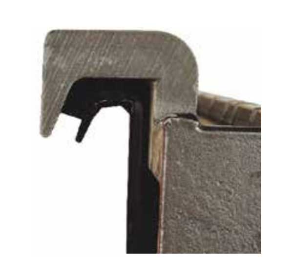 - Les patins d’usure supérieurs et inférieurs sont complètement protégés : le supérieur à l’intérieur du profil, les inférieurs à l’intérieur des crochets pour modèle 990, 2 500, 3 500 et 4 900 kg