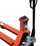 Transpalette manuel, partenaire idéal pour la manutention de palettes et leur pesage indicatif. Équipé d’un système de pesée robuste et précis, avec une marge de ± 0,1 % jusqu’à 2000 kg et un affichage par tranche de 500 g.